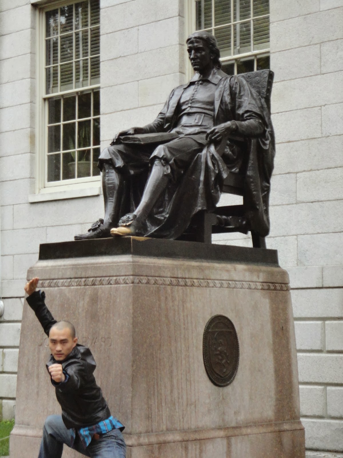 Whilst at Harvard we noticed everyone seemed to be getting there photo taken with the above statue, and by everyone I mean a large asian tour group... one at a time. Then all of a sudden this gentleman popped up. We couldn't help but take a quick snap of how he decided to pose.